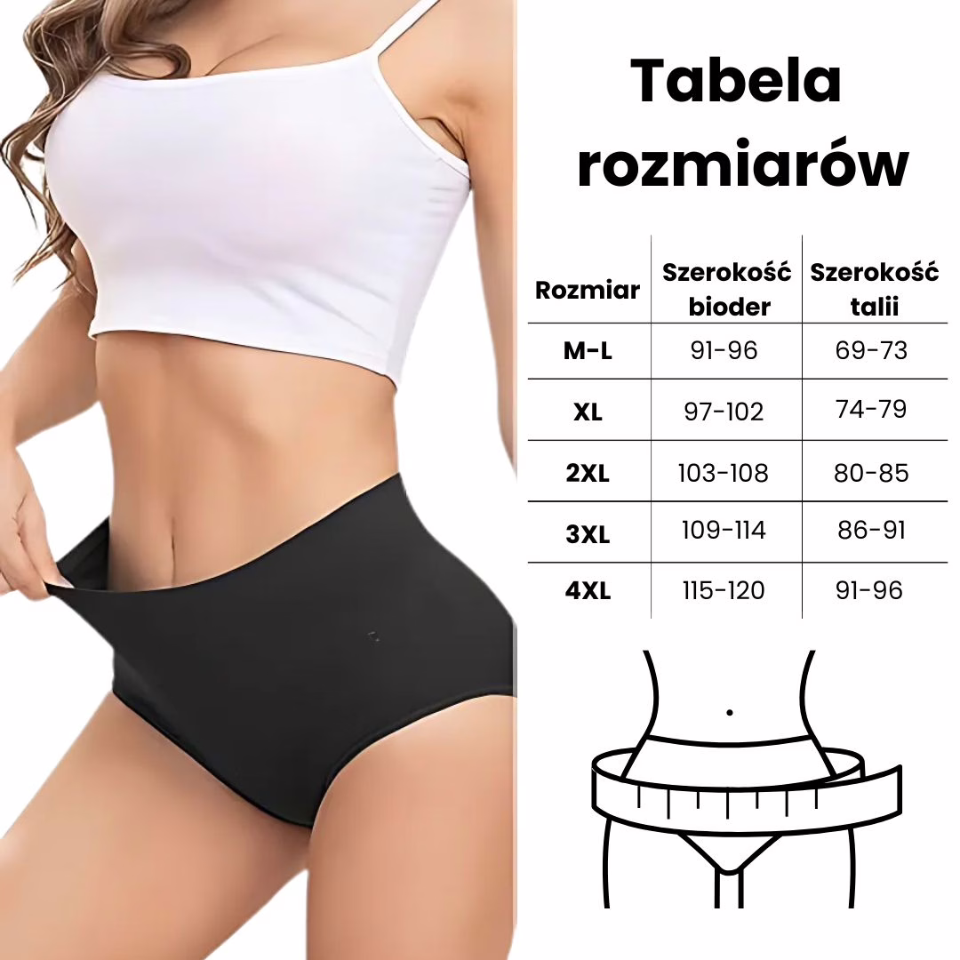 Każda kobieta znajdzie idealny rozmiar dla siebie. Niezależnie od kształtu nasze majtke oferują wygodę i ochronę. Przed zakupem porównaj swój rozmiar do naszej tabeli.