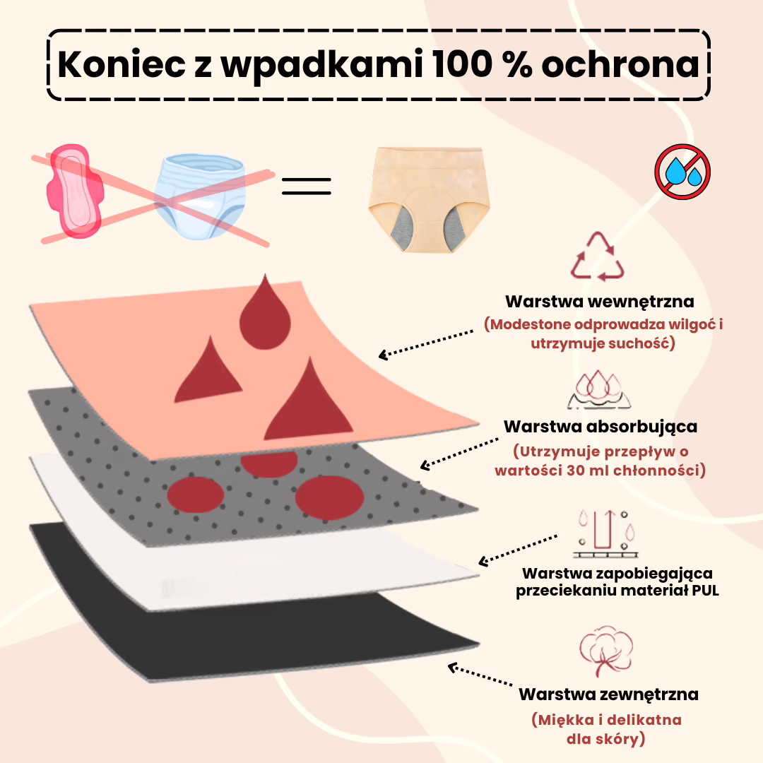 🩲 Dyskretne, wygodne i wyglądające jak zwykła bielizna – komfort bez wstydu i ograniczeń.